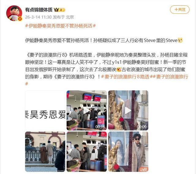 据3月14日网友爆料,《妻子的浪漫旅行8》的一组机场路透,又在网上贡献了一波“甜蜜暴击”。画面里,伊能静亲昵地给秦昊整理头发,两人旁若无人地贴耳私语,那股子自然流露的恩爱劲儿,隔着屏幕都齁得慌。